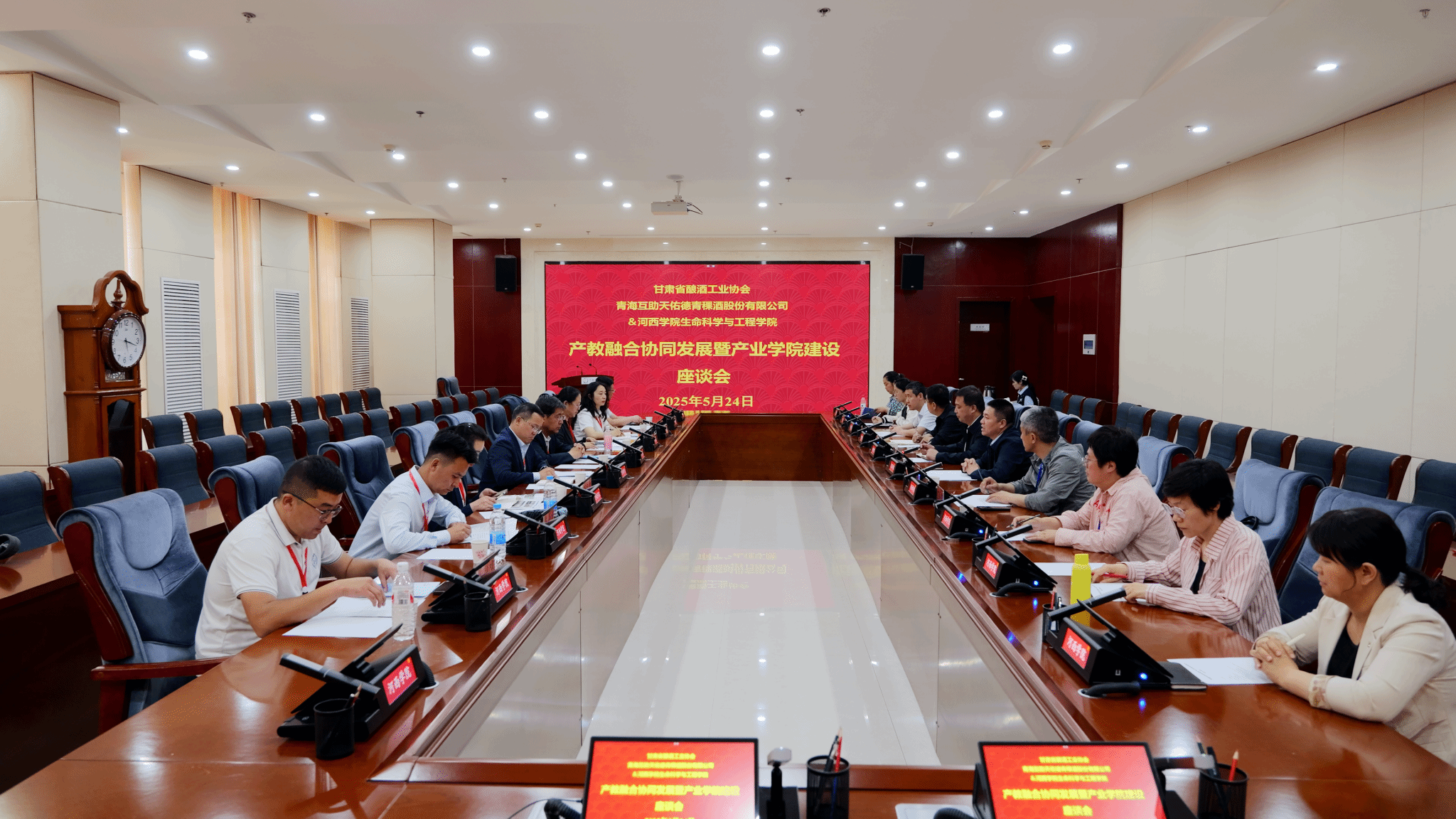 5月24日,体育平台官网“陇酒佳酿·品味千年”白酒文化科普暨酒类品评大赛系列活动—产教融合协同发展暨产业公司建设座谈会在河西讲堂1号会议室举行,甘肃省酒业协会会长杨正平、秘书长金红,青海互助天佑德青稞酒股份有限公司常务副总经理冯声宝一行12人应邀出席论坛,体育平台官网部分师生代表参加。论坛由教务处负责人主持。