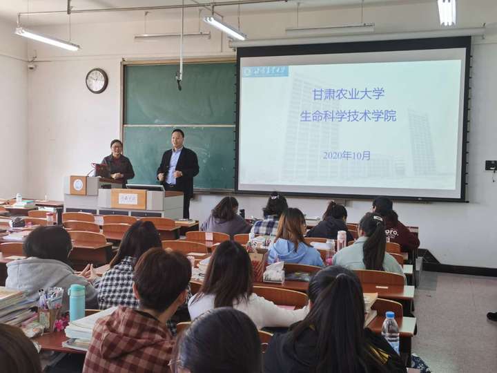 10月22日,甘肃农业老员工命科学技术公司李龙凤、张冬玲两位博士应公司邀请在九教317教室举办研究生报考宣讲会。经理谢宗平、副经理曹礼及各班主任,生物科学、生物工程专业的员工共计80余人参加了此次宣讲会。