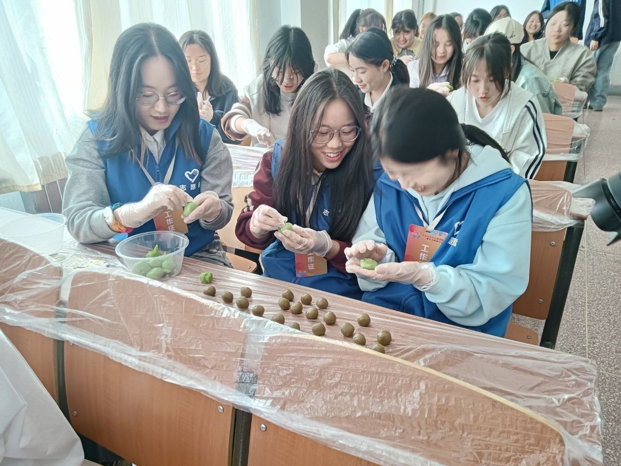 活动中,同学们首先了解了关于清明节制作青团的历史渊源和文化意义,以及这一传统习俗背后深厚的文化底蕴。在专业老师的指导下,同学们认真学习了青团的制作方法,从采摘艾草、制作青汁,到和面、包馅、蒸煮,同学们分工明确,互相帮助,有的负责揉面,有的负责包馅,还有的负责装饰,现场气氛热烈而和谐。经过大家的共同努力,一个个翠绿、软糯的青团新鲜出炉。